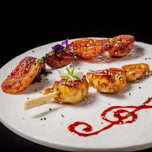 Brochettes de poulet teriyaki et ses grenailles caramélisées