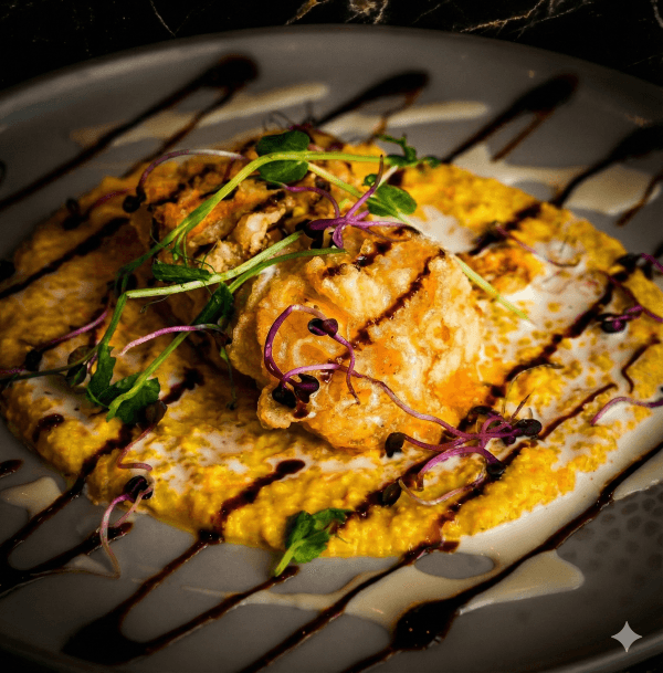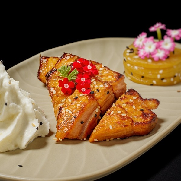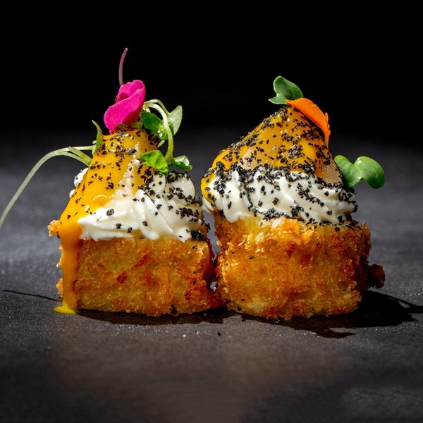 St Jacques laquées à l’orange, yuzu et purée de patate douce